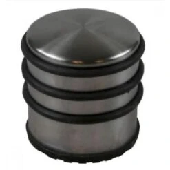 Deurstopper van 1.1 kilo staal met zwarte kunststof rand met diameter 9 cm en hoogte 7 cm. Handig om deuren niet te laten klapperen.