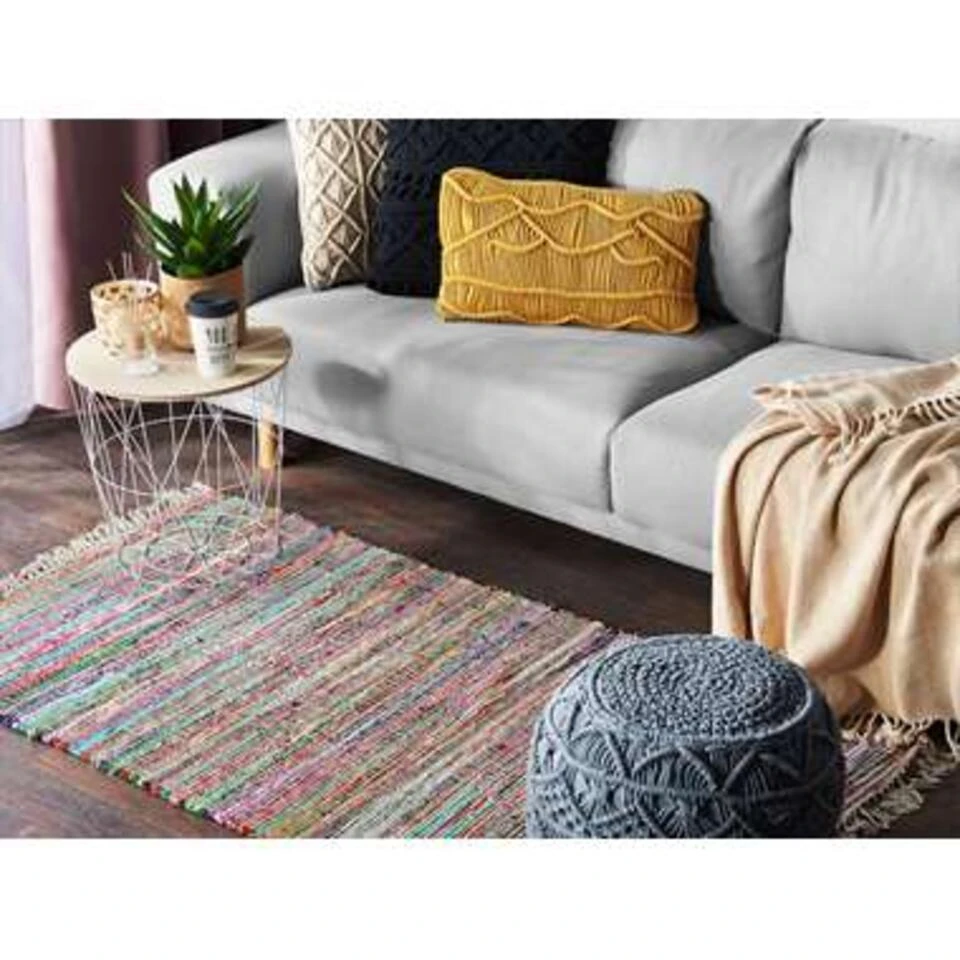 Gewoven boho tapijt met franjes. Dit kleurrijke boho-design vloerkleed is een geweldige aanwinst in een interieur met eigentijdse en eclectische decors. Het vloerkleed is door zijn samenstelling ongelooflijk zacht en duurzaam, zodat het bestand is tegen langdurig gebruik. Laat het goed tot zijn recht komen en geef een meer minimalistische en moderne woonkamer, slaapkamer of eetkamer een kleurrijke sfeer.