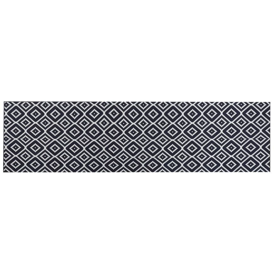 Rechthoekig vloerkleed met ruitpatroon . Geef je huis een gastvrij en warm gevoel met dit stijlvolle, moderne vloerkleed. Het stuk, gemaakt van duurzaam polyester, zal er geweldig uitzien in je gang of slaapkamer. Het heeft een diamantpatroon op de voorkant in zwart-witte kleuren. Dankzij het ontwerp zal het vloerkleed er geweldig uitzien in verschillende interieurs, van retro tot modern.