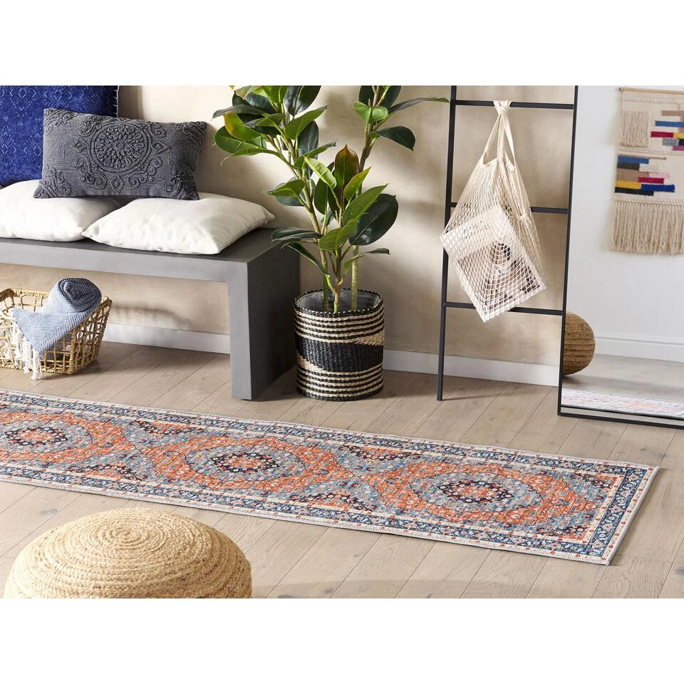 Oosters vintage loper vloerkleed. Breng een oosterse sfeer in je huis met dit stijlvolle loper vloerkleed. Het tapijt is gemaakt van duurzaam polyester en heeft een uniek patroon dat versleten is voor een extra vintage look. Dankzij dat, en door de kleurencombinatie, kan het vloerkleed worden gecombineerd met verschillende interieurstijlen – van rustiek tot boho en retro. Door zijn formaat komt hij het best tot zijn recht in je gang of slaapkamer, naast je bed.