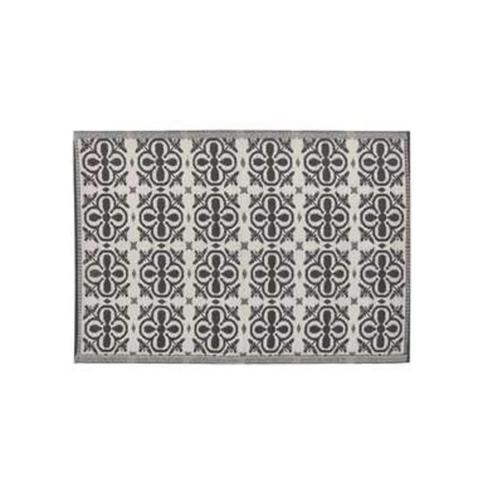 Elegant buitentapijt met bloemenmotief in zwart. Dit vloerkleed voor binnen en buiten is een prachtig woonaccessoire voor elk woongedeelte. Dankzij het gebruikte synthetisch materiaal kan het worden gebruikt op een veranda, terras of balkon met behoud van de strakke geweven structuur. Het heeft een prachtig ontwerp met een combinatie van kleuren – perfect om een moderne look toe te voegen aan je woonruimte. Haal het kleed wel even naar binnen wanneer het regent. Zo heb je nog langer plezier van dit kleed.
