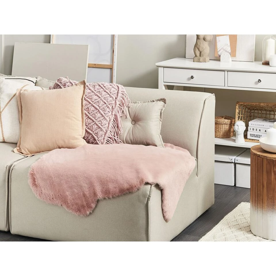 Pluizige vloerkleed in roze imitatiebont van konijn. Zorg ervoor dat je altijd aan de rechterkant van het bed uitstapt! Het gevoel van de zachte en pluizige textuur van dit vloerkleed dat de vacht van een konijn imiteert, zal zeker de juiste toon zetten voor de rest van de dag. Het stuk zorgt voor een gezellige toevoeging aan elke slaapkamer, woonkamer of kinderkamer.
