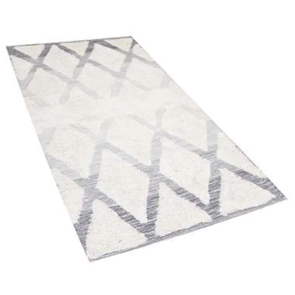 Modern, licht beige vloerkleed / tapijt met ruit patroon in grijs. Dit ruige, handgemaakte vloerkleed is een echte blikvanger dankzij het moderne ruit patroon. Het hoogwaardige materiaal en de interessante compositie van grijs op licht beige maken het een decoratief accessoire bij uitstek.