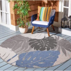 Floral Binnen En Buitenvloerkleed Laagpolig Outdoor Beige – 200 CM ROND