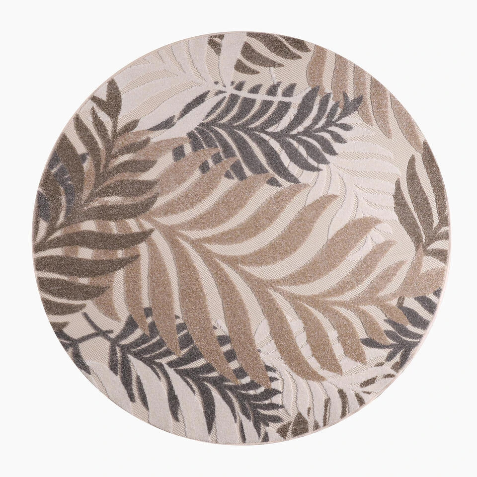 Floral Binnen En Buitenvloerkleed Laagpolig Outdoor Creme – 150 CM ROND