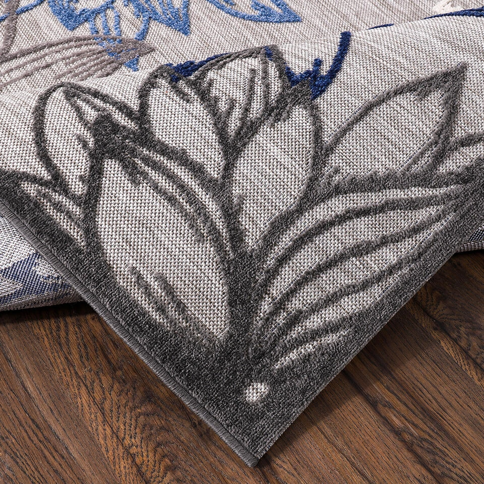 Floral Binnen En Buitenvloerkleed Laagpolig Outdoor Grijs – 120×170 CM