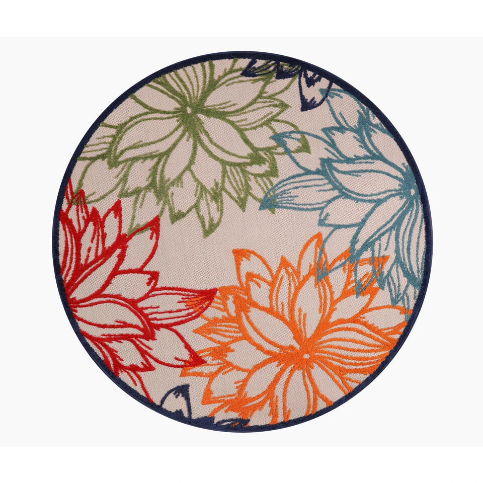 Floral Binnen En Buitenvloerkleed Laagpolig Outdoor Multi – 200 CM ROND