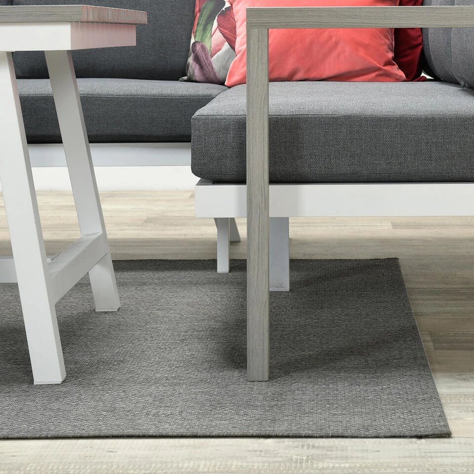 Wil je meer sfeer creëren in de tuin? Dan is een buitenkleed daar echt geschikt voor. Een vloerkleed voor in de tuin staat erg leuk onder een loungeset of tuinset. Haal binnen naar buiten! Het buitenkleed is vervaardigd uit gewoven polypropyleen. Dit is een hoogwaardige kwaliteit kunststof en kan daarom goed buiten blijven liggen. Het buitenkleed heeft een uniek design en is verkrijgbaar in drie gangbare formaten. Dit buitentapijt kan uiteraard ook prima binnen worden neergelegd. Het buitenkleed kun je het beste schoon houden door het regelmatig te stofzuigen. Als er een vlek in het vloerkleed komt, dan is het verstandig om deze vlek met een vochtige doek te behandelen. Het is verstandig om dit te deppen in plaats van te wrijven. Het buitentapijt is vuur- en hittebestendig. Het dessin van dit buitenkleed is een zeer fijn gewoven dessin. Er zijn twee kleuren antraciet gebruikt in twee verschillende draad diktes. Dit mooie buitenkleed is naast deze afmeting ook leverbaar in 120×170 cm en 160×230 cm. Het buitenkleed Portmany antraciet 200×290 cm is geschikt voor zowel binnen als buiten en leverbaar in drie gangbare formaten.