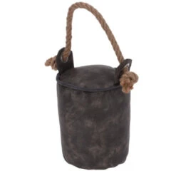 Deurstopper met 1 kilo gewicht voor binnen- of buitendeuren in de kleur grijs met optil/verplaats lus van jute touw. Afmetingen: 18 x 14 cm. Gemaakt van namaak leer. Super handig artikel voor elk huis, winkel of kantoor om geen klapperende deuren te hebben.