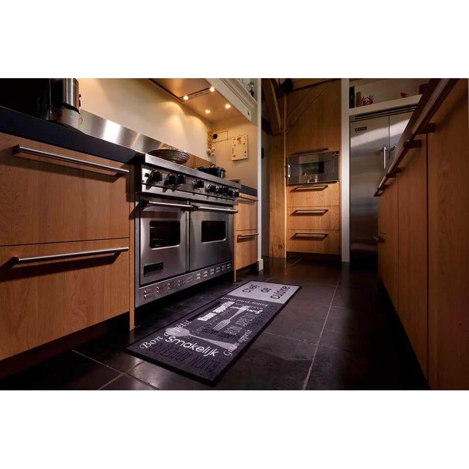 Ben jij de chef in huis? Een lekker avondmaal zorgt altijd voor tevreden gezichten maar ook voor troep in de keuken. Deze keukenloper beschermt je keukenvloer tegen vlekken en krassen. Tevens is deze vrolijke loper wasbaar op 30c graden! Deze keukenloper is voorzien van een antislip- backing. Wel zo veilig!