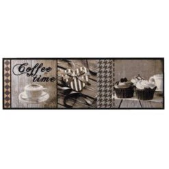 Keukenloper Coffee Time is niet alleen een gezelligmaker voor in de keuken, het zorgt er ook voor dat de keukenvloer wordt ontzien van vlekken en krassen. Deze leuke loper is in de kleur bruin en is voorzien van een prachtige printopdruk en de tekst Coffee Time. Handig is dat deze loper wasbaar is in de wasmachine op 30 graden Celsius. Keukenloper Coffee Time heeft een afmeting van 50×150 cm en is gemaakt van 100% polyamide. Deze keukenloper is voorzien van een antislip-backing. Dit zorgt ervoor dat de loper ook op een gladde vloer blijft liggen.