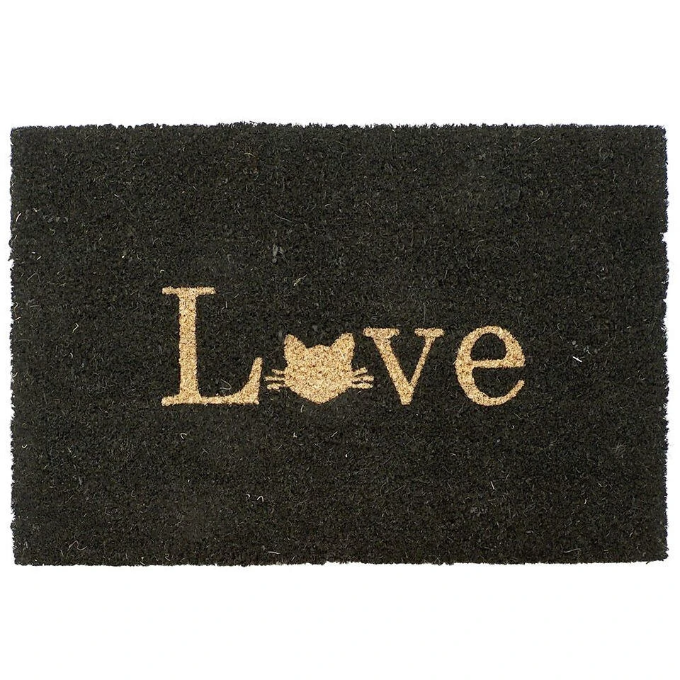 Merkloos Deurmat – Love – Kat – Zwart – Kokosvezel – 60 X 40 Cm