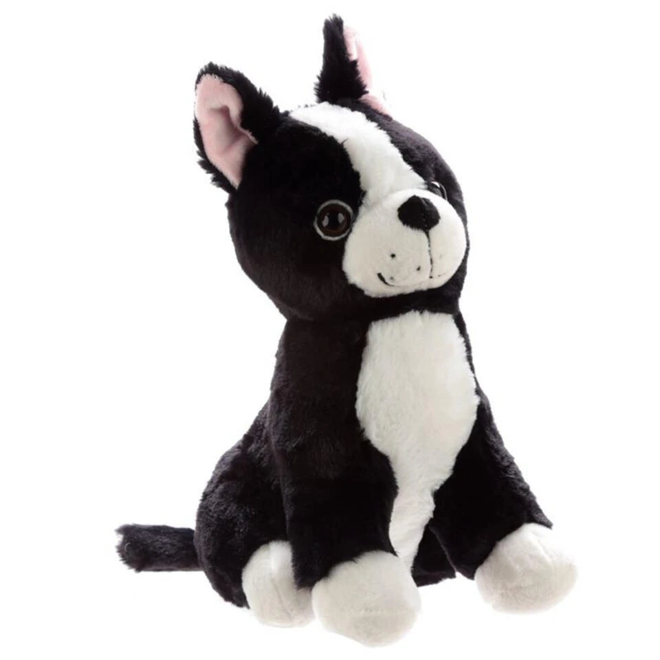 Dieren deurstopper hond 29 cm. Zwart/witte deurstopper in de vorm van een pluche hond knuffel. De deurstopper heeft kraalogen en is verzwaard met zand. Formaat: 13 x 16 x 29 cm. Materiaal buitenzijde: polyester, plastic. Materiaal binnenzijde: 50% zand/50% polyester. Deurstoppers verzwaarde honden knuffels.