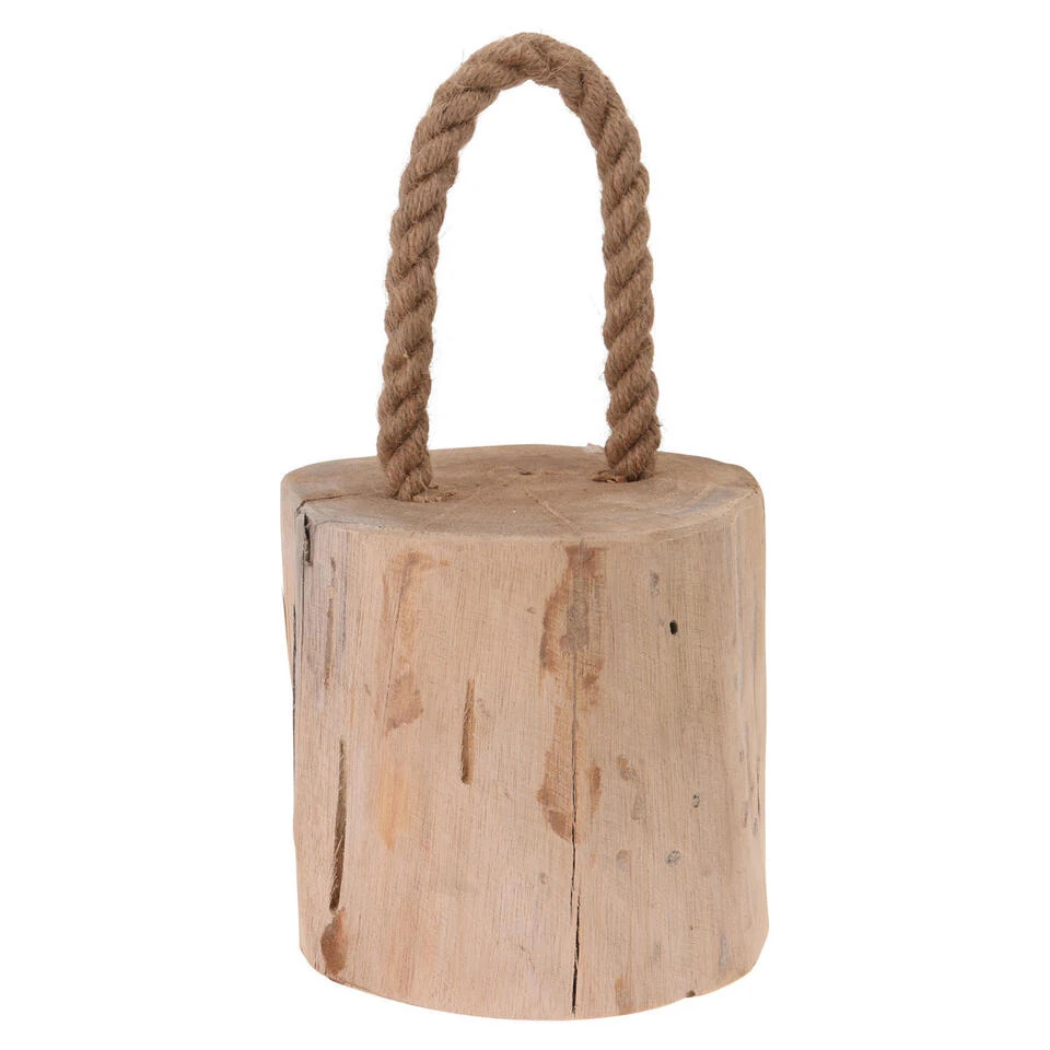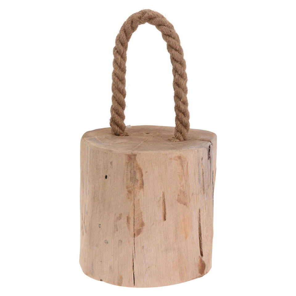Deurstopper van hout, 1 kg. Deze blank houten deurstopper is voorzien van een draagtouw. Deze deurstopper is geschikt voor elke deur, binnen en buiten, en zelfs voor klapramen!