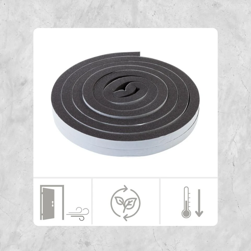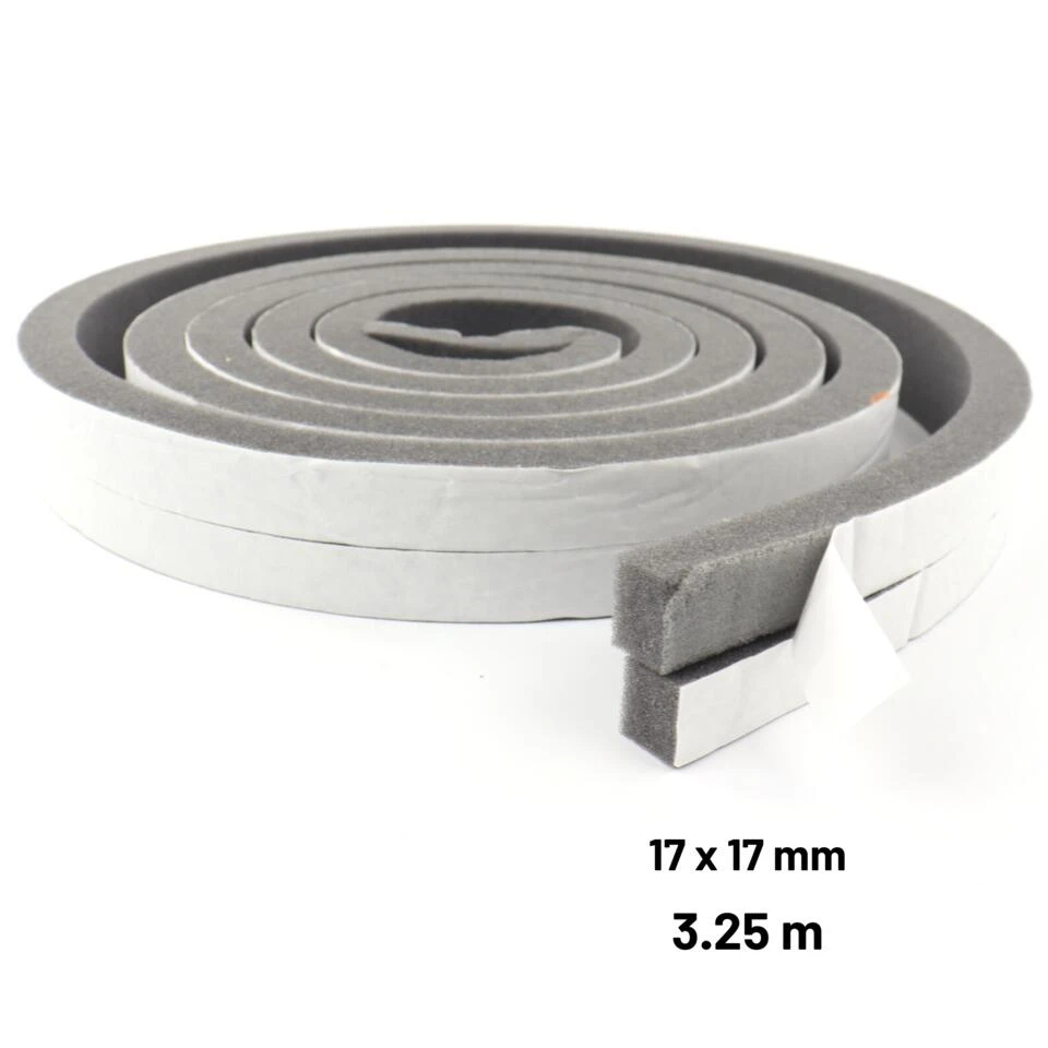 Tochtstrip zwart foam 2 x 3.25 meter. De strip heeft een breedte en dikte van 17mm. Geschikt voor kieren tussen 3mm en 16mm. De tochtstrip is waterbestendig, windbestendig en gemaakt van duurzaam foam materiaal. Zeer geschikt voor deuren en ramen. De strip is eenvoudig op de juiste te maat te snijden en gemakkelijk te installeren door middel van de plakrand. Er is geen speciaal gereedschap nodig.