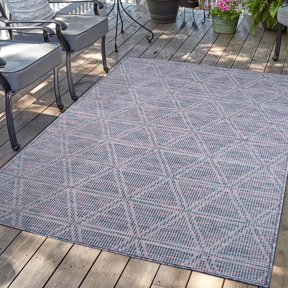 Palm Binnen En Buiten Vloerkleed Tapijt Laagpolig Blauw Roze – 150×150 CM