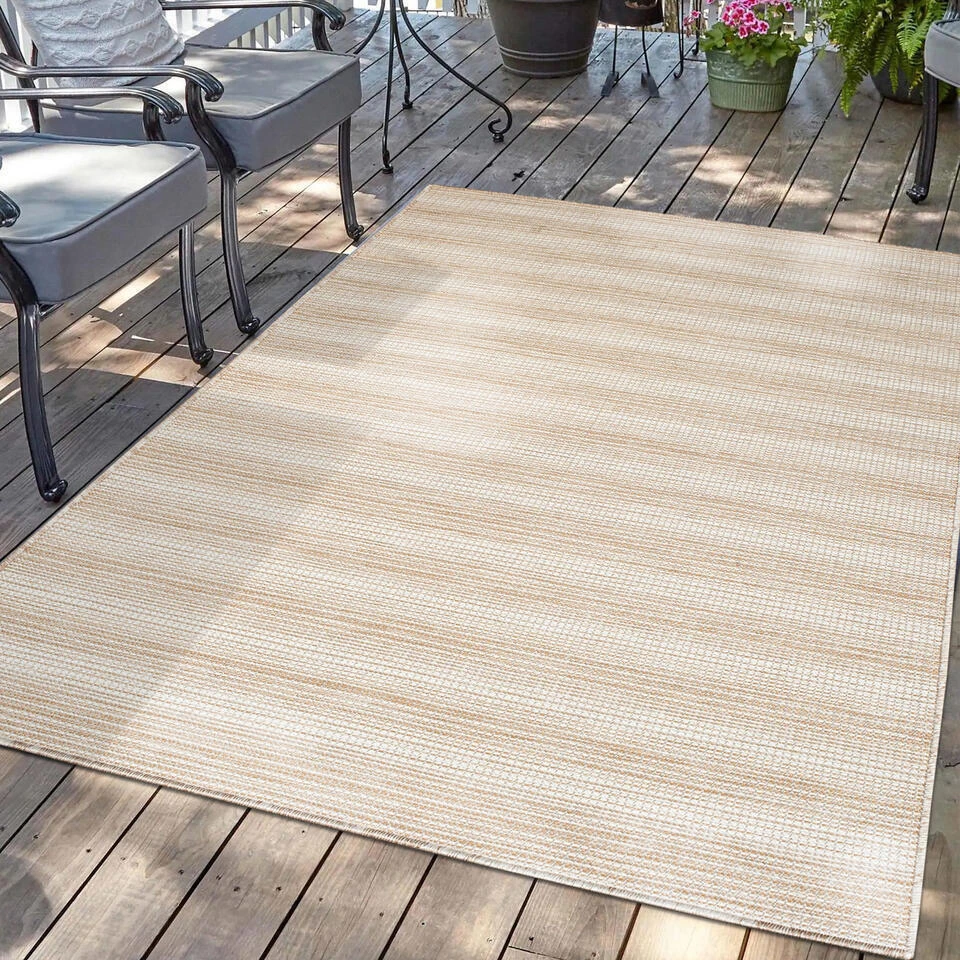 Palm Tuin Binnen En Buiten Vloerkleed Tapijt Laagpolig Beige – 150×150 CM