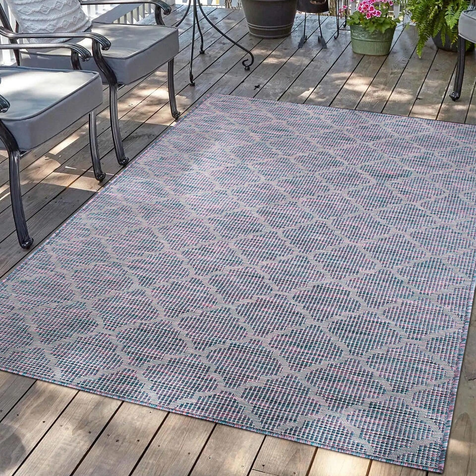 Palm Tuin Binnen En Buiten Vloerkleed Tapijt Laagpolig Blauw Roze – 150×150 CM
