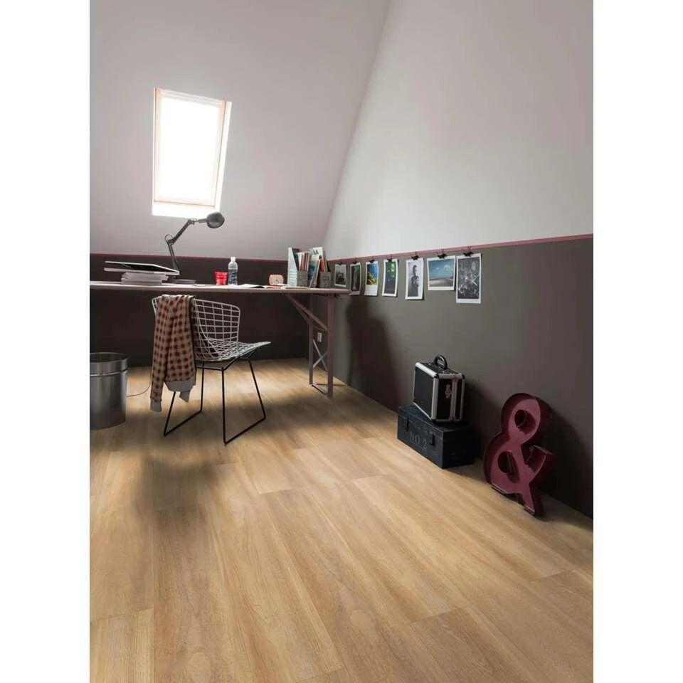 PVC vloer Creation 30 Clic met kleurnaam Bostonian Oak Honey is bruin en beige van kleur. Deze vloer heeft een moderne, natuurlijke en matte uitstraling. De vloer is gemakkelijk te installeren en hij is geschikt voor intensief huishoudelijk en normaal projectmatig gebruik. Deze PVC vloer is flexibel, geluiddempend en warmte-isolerend. Daarnaast is hij geschikt voor alle vormen van vloerverwarming (tot 28 graden) en vloerkoeling. PVC vloer Senso Clic is gemakkelijk in onderhoud en bij beschadiging kan een plank of tegel gemakkelijk vervangen worden. Geef jouw woning een persoonlijk tintje!