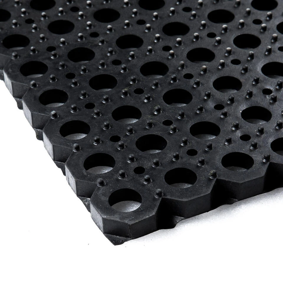 Een ringmat is zowel binnen als buiten te gebruiken. De open bodem zorgt voor een goede afvoer van vloeistoffen en vuil. Dat is niet alleen praktisch bij je entree, maar ook veilig op plaatsen waar de vloer vaak nat is. Doordat de mat van natuurlijk rubber is gemaakt, heeft deze een goede antislip werking, zelfs op koude en natte winterdagen. Tot slot heeft rubber een (geluid)dempende en isolerende werking. Schoonmaken van de ringmat kan heel gemakkelijk door deze uit te kloppen of af te spuiten met een tuinslang/hogedrukspuit.