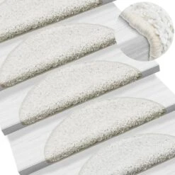 Deze matten zijn gemaakt van sterk, genaaldvilte stof, ze zijn daardoor geluiddempend, anti-slip, warm en comfortabel. Deze matten zijn wasbaar en beschermen zowel de bovenkant als de voorkant van de traptredes. De klevende puntjes op de achterzijden zorgen ervoor dat de matten snel en makkelijk aan de trap kunnen worden geplakt.