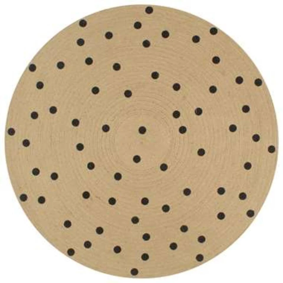 Jute is een natuurlijk en sterk materiaal dat zacht aanvoelt maar toch duurzaam is en weinig onderhoud nodig heeft. Dit vloerkleed is bedrukt met een modern polkadot ontwerp en zal gegarandeerd elke kamer een speels vleugje geven. Let op, elk tapijt is uniek; variaties in kleur en ontwerp kunnen voorkomen omdat het product met de hand gemaakt is. De levering is willekeurig.